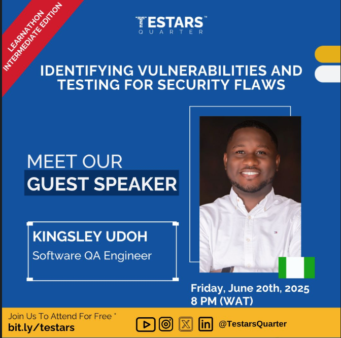 My first speaking engagement was on the 20th of June, 2025, with the TestarQuarter QA community in Lagos, Nigeria. I spoke about "Identifying Vulnerabilities and Testing for Security Flaws." I am not going to lie, never did I imagine that I would be here so early.